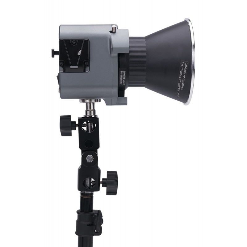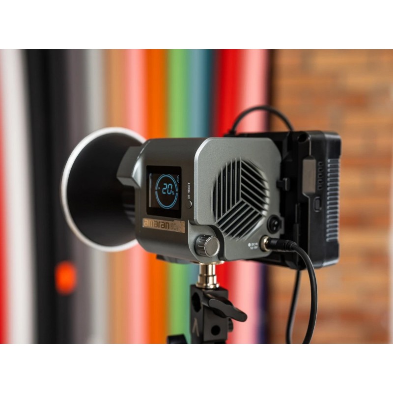 Lampa LED Amaran COB 60d S wspiera popularny standard Bowens wykorzystywany do montażu przeróżnych modyfikatorów światła. To szeroko rozpowszechnione rozwiązanie w świecie filmu i fotografii. Setki akcesoriów, takich jak wrota, czasze, softboxy, gridy lub strumienice czekają na połączenie z modelem Amaran COB 60d S. Wisienką na torcie jest otwór na parasolkę, który wbudowano w przegubowy adapter montażowy będący częścią zestawu.