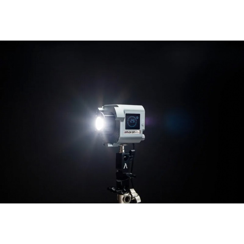 Lampa LED Amaran COB 60d S to unikalne połączenie niewielkich rozmiarów i ogromnej mocy. Jest na tyle lekka, że w razie konieczności można ją wygodnie trzymać w dłoni, co na pewno docenią entuzjaści fotografii. Urządzenie oferuje imponujące parametry. Przy 65 W maksymalnej mocy wyjściowej uzyskasz strumień świetlny na poziomie 7195 lumenów. Łącząc lampę z czaszą Hyper Reflector Mini osiągniesz wiązkę o natężeniu aż 134700 luksów!
