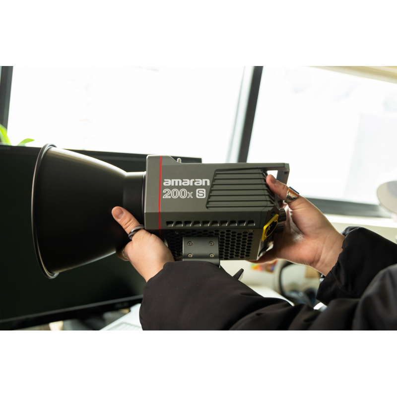 Amaran 100d S obsługuje popularny standard Bowens, stosowany do montażu popularnych modyfikatorów światła. Jest to szeroko rozpowszechnione rozwiązanie w świecie filmu i fotografii. Setki akcesoriów, takich jak wrota, czasze, softboxy, gridy czy strumienice są kompatybilne z modelem Amaran 100d S. Na uwagę zasługuje również otwór na parasolkę, znajdujący się na zintegrowanym mocowaniu lampy.