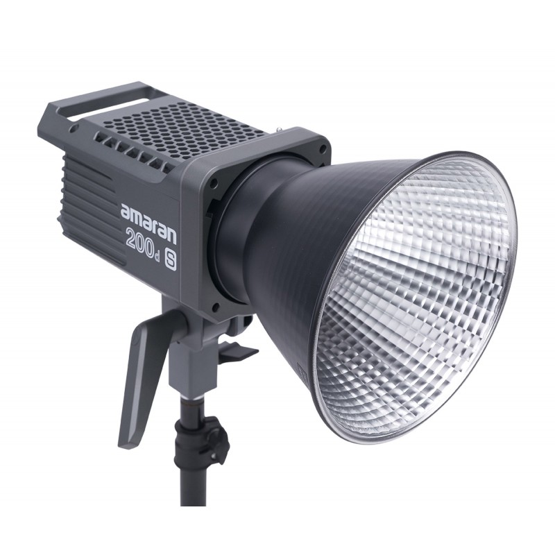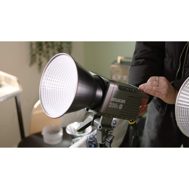 Lampa LED Amaran 200d S wspiera popularny standard Bowens, wykorzystywany do montażu przeróżnych modyfikatorów światła. To szeroko rozpowszechnione rozwiązanie w świecie filmu i fotografii. Setki akcesoriów, takich jak wrota, czasze, softboxy, gridy lub strumienice czekają na połączenie z modelem Amaran 200d S. Wisienką na torcie jest otwór na parasolkę, który znajdziesz na mocowaniu zintegrowanym z lampą.