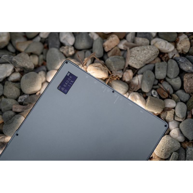 Newell RGB-W Rangha Max XL to kompaktowy panel LED o imponujących wymiarach 28 na 18 cm, który spełni oczekiwania zarówno fotografów, jak i twórców video. Urządzenie oferuje regulację temperatury barwowej (2500 - 9900 K), a także możliwość zmiany koloru światła w obrębie przestrzeni barw HSI. Intuicyjną obsługę lampy zapewniają ergonomiczne pokrętła i przyciski, a także podświetlany ekran OLED. Trzy gwinty 1/4" oraz dołączony do zestawu adapter zimnej stopki to rozwiązania, które pozwolą połączyć lampę ze statywem lub akcesoriami foto-video. Port USB-C umożliwia szybkie uzupełnianie energii we wbudowanym akumulatorze (23000 mAh). Gniazdo USB-A pozwala ładować inne urządzenia bezpośrednio z lampy. Producent nie zapomniał też o 21 efektach specjalnych (m.in. stroboskop, świeca lub światła radiowozu).