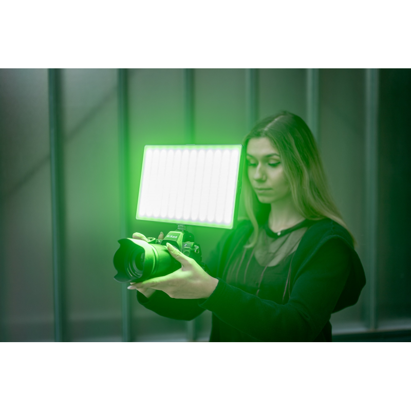 Z pomocą lampy Newell RGB-W Rangha Max XL Twoje zdjęcia i filmy mogą zostać uzupełnione o kolorowe światło, które doda ujęciom i kadrom niepowtarzalnego charakteru. Urządzenie pozwala skorzystać z palety barw HSI, gdzie osobno zmienisz takie parametry jak odcień, nasycenie i jasność. Lampa zapewni niemal nieograniczone możliwości eksperymentowania z barwnym światłem. Dzięki niej ożywisz swoje zdjęcia i filmy, dodając unikalne, kolorowe akcenty.