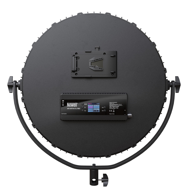 Dzięki dwóm różnym sposobom zasilania, lampa LED Newell Air Artha XL RGB RC APP sprawdzi się w każdym miejscu – w studiu, w domu, a także w terenie. W zestawie znajdziesz kompatybilny zasilacz DC 15 V / 5 A. Urządzenie wyposażono również w gniazdo akumulatora V-Mount (V-Lock). Dzięki temu wszędzie tam, gdzie dostęp do gniazdka elektrycznego jest ograniczony, możesz cieszyć się bezprzewodowym zasilaniem.