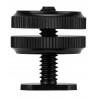 Lampę LED Yongnuo YN120 - RGB, WB (2500 K - 9900 K) wyposażono w dwa żeńskie gwinty 1/4", umożliwiające łatwy montaż na statywie. Ten sposób mocowania sprawdzi się również w połączeniu z adapterem zimnej stopki, który znajdziesz w zestawie. Dzięki niemu lampa może być błyskawicznie zamontowana na przykład na Twoim aparacie fotograficznym.
