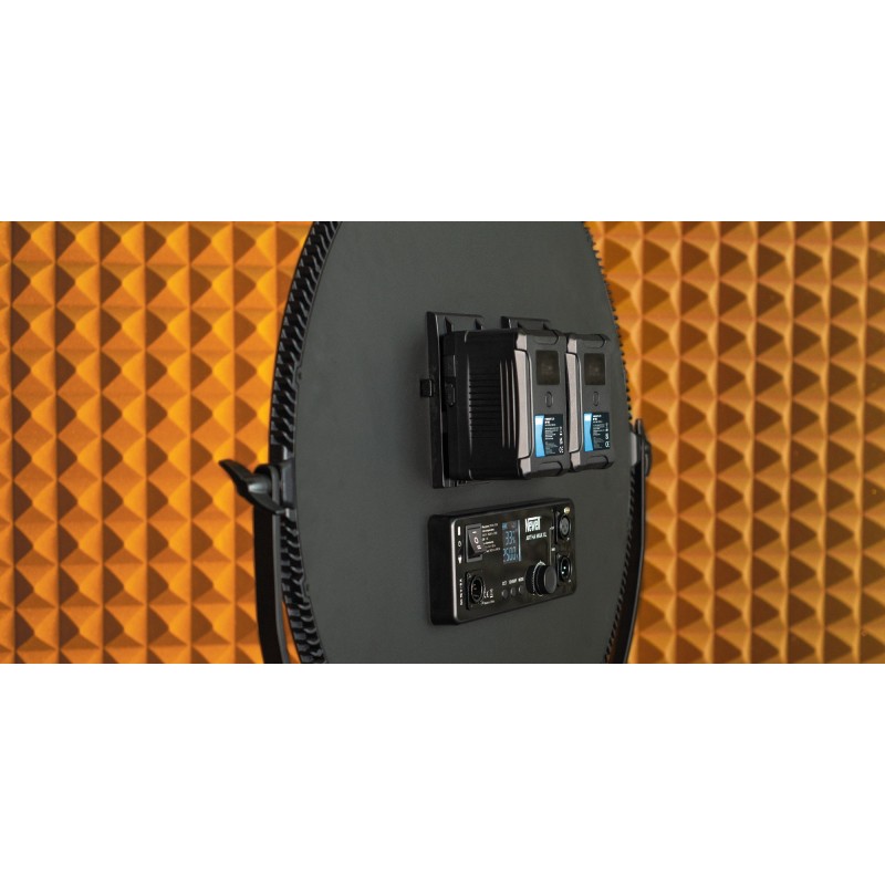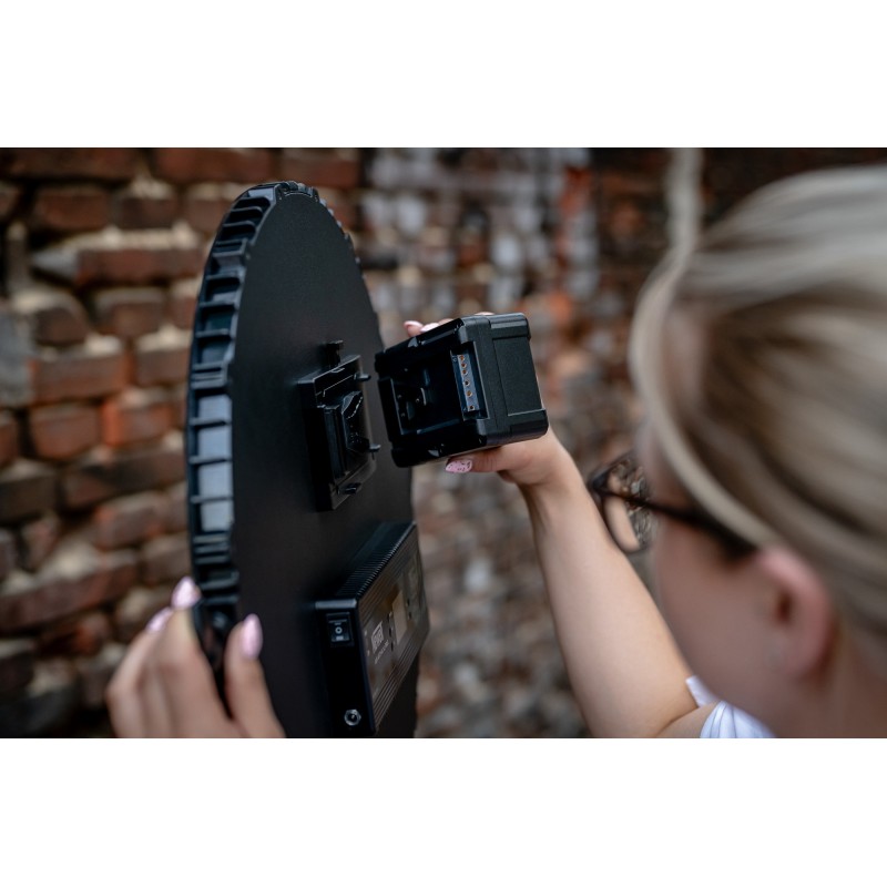 Zestaw, w którego skład wchodzi lampa Newell Air Artha Max XL oraz akumulator Newell BP-150 LCD V-Mount to wszystko, czego potrzebujesz, aby w wygodny sposób pracować z oświetleniem i uniezależnić się od gniazdek elektrycznych. Okrągły panel LED o średnicy 55,8 cm, z maks. mocą 110 W i strumieniem świetlnym 7000 lm oferuje regulację temperatury barwowej (2500 do 8500 K), zdalne sterowanie (pilot lub aplikacja mobilna) oraz wbudowany dyfuzor. Lampa została wyposażona w 2 gniazda V-Lock. Możesz więc z łatwością podłączyć do niej akumulator Newell BP-150 LCD V-Mount o pojemności 10500 mAh. Lampa działa bez problemu z jednym akumulatorem. Ogniwo może też pełnić funkcję power banku. Na jego obudowie znajdziesz również porty D-Tap, USB-C i USB-A, które rozszerzają wszechstronność jego zastosowań. Akumulator Newell BP-150 LCD V-Mount posiada również zaawansowane zabezpieczenia i podświetlany ekran LCD informujący o stanie naładowania i czasie działania. Cały zestaw zapewni Ci mobilność, niezależność energetyczną i profesjonalną jakość oświetlenia zarówno w studio, jak i w terenie.