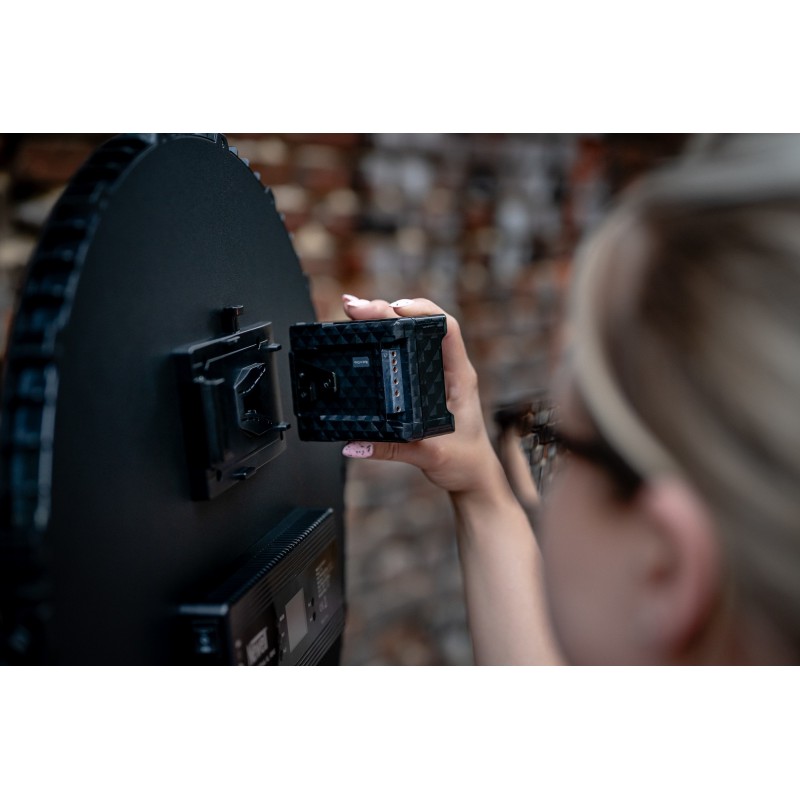Zestaw, w którego skład wchodzi lampa Newell Air Artha XL oraz akumulator Newell BP-95 LCD V-Mount to wszystko, czego potrzebujesz, aby w wygodny sposób pracować z oświetleniem i uniezależnić się od tradycyjnego zasilacza. Okrągły panel LED o maks. mocy 70 W oferuje regulację temperatury barwowej (od 3200 do 5600 K). Lampa została wyposażona w 1 gniazdo V-Mount. Możesz więc z łatwością podłączyć do niej akumulator Newell BP-95 LCD o pojemności 7000 mAh. Ogniwo może też pełnić funkcję power banku. Na jego obudowie znajdziesz również porty D-Tap, USB-C i USB-A, które rozszerzają wszechstronność jego zastosowań. Cały zestaw zapewni Ci mobilność, niezależność energetyczną i profesjonalną jakość oświetlenia zarówno w studio, jak i w terenie.