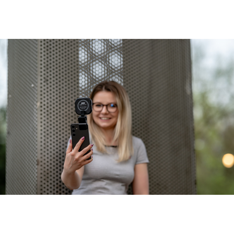 Lampka LED Newell Sunny to narzędzie, które doskonale wpisuje się w potrzeby współczesnych twórców internetowych. Szczególnie tych, którzy filmują i fotografują smartfonami. Smukłe urządzenie o kompaktowych wymiarach 7,2 x 7,2 cm i wadze 125 g z łatwością zmieści się w plecaku, kieszeni, kosmetyczce lub torebce. To pozycja obowiązkowa dla vlogerów, streamerów, fotografów oraz innych twórców internetowych, którym zależy na mobilności i szerokich możliwościach personalizacji światła wykorzystywanego podczas nagrań, transmisji na żywo lub sesji fotograficznych.