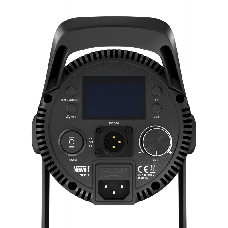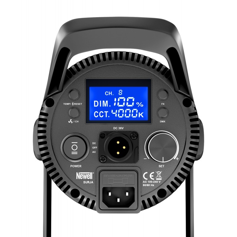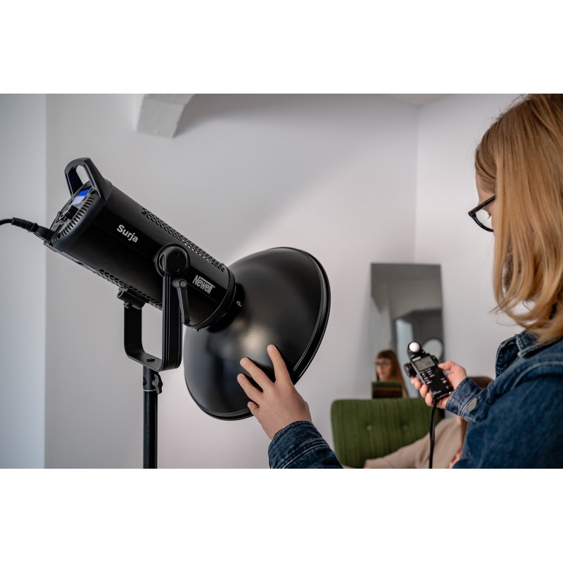Dzięki wysokiemu wskaźnikowi odwzorowania barw (CRI: 96+) lampa LED Newell Surja 400 gwarantuje precyzyjne odwzorowanie kolorów, co jest niezwykle istotne w branży filmowej i fotograficznej, a także na scenach. Z odległości 1 metra, przy temperaturze barwowej 5600 K, lampa osiąga natężenie światła wynoszące 15600 lx. Po zainstalowaniu na niej dołączonej do zestawu czaszy wartość ta wzrasta aż do 69400 lx, co zapewnia jeszcze większą elastyczność pracy.