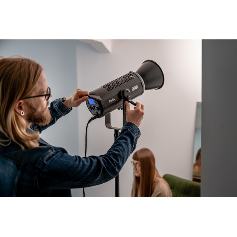 Lampa LED Newell Surja 400 powstała po to, aby w efektywny sposób wspierać Twoje kreatywne projekty. Od profesjonalnych sesji fotograficznych, gdzie precyzyjne oświetlenie jest kluczowe dla jakości Twoich kadrów, po vlogi, webinary i filmy, gdzie wyraziste i regulowane światło jest niezbędnym elementem scen i ujęć. Z powodzeniem wykorzystasz ją również na scenach teatralnych lub koncertowych. Dzięki dużej mocy i możliwości regulacji jasności oraz temperatury barwowej model Surja będzie doskonałym wyborem zarówno wśród profesjonalistów, jak i domorosłych pasjonatów fotografii oraz filmu.