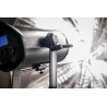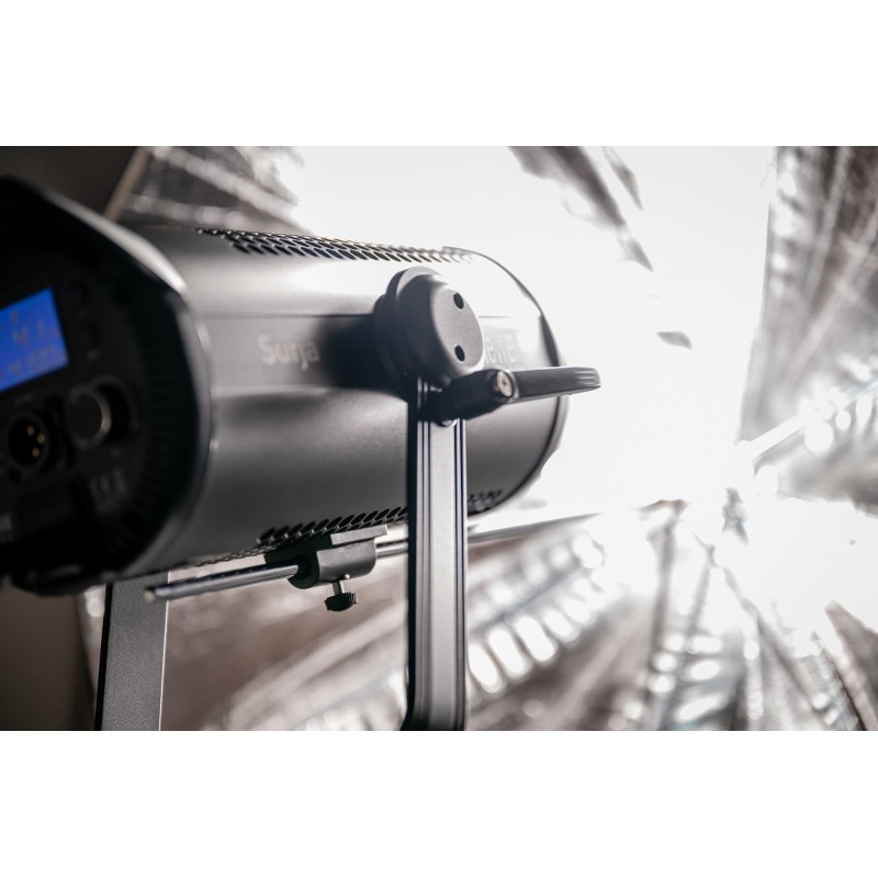 Precyzyjne ustawienie lampy Newell Surja zainstalowanej na statywie zapewni solidny uchwyt widełkowy blokowany za pomocą solidnego zacisku. Możesz mieć pewność, że urządzenie pozostanie w zdefiniowanej pozycji, nawet jeśli skorzystasz z dłuższego modyfikatorów światła. Lampę wyposażono w tradycyjne mocowanie statywu oświetleniowego 16 mm, które uzupełniono o śrubę zaciskową.