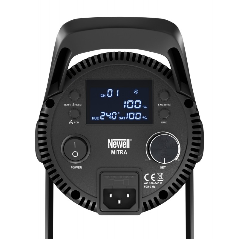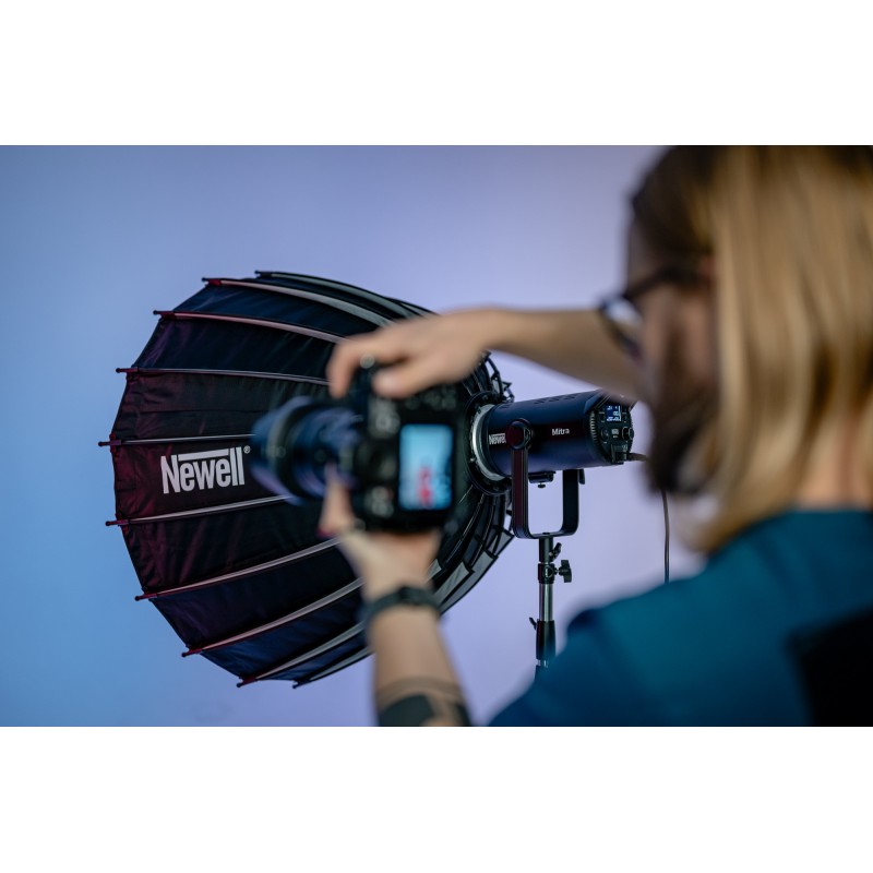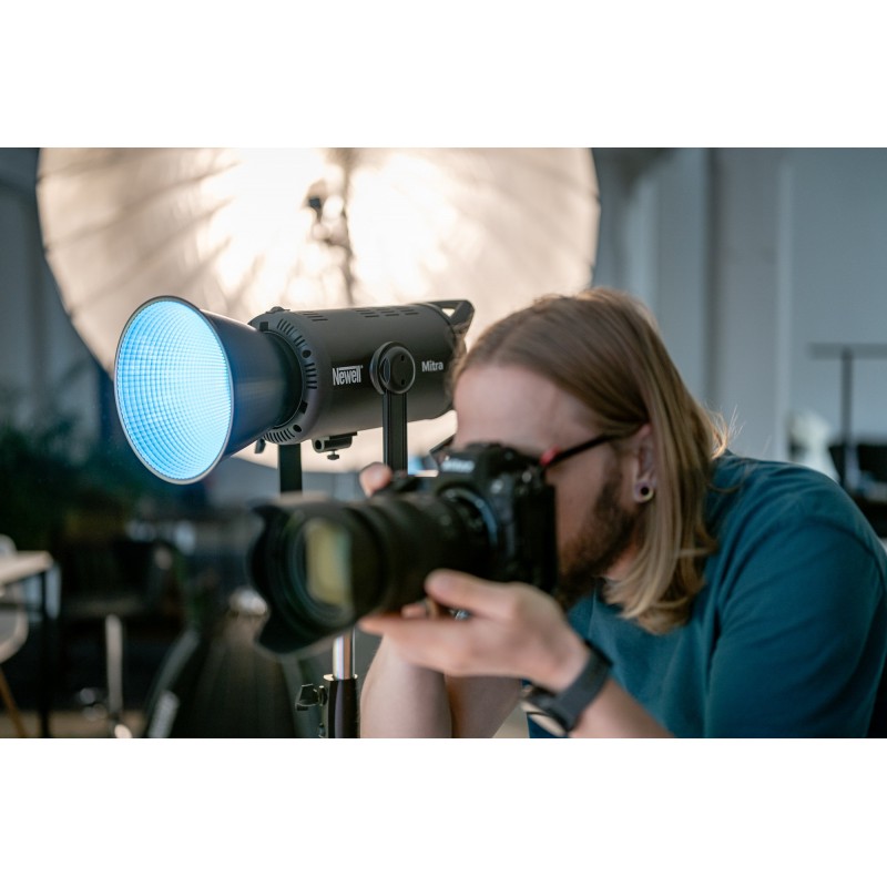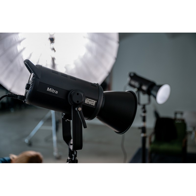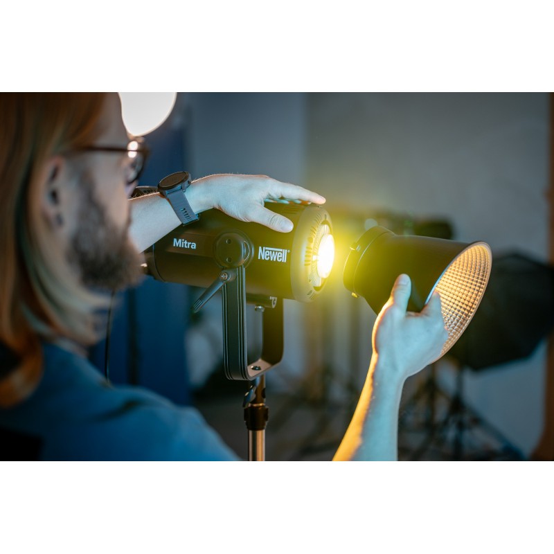 Dzięki wysokiemu wskaźnikowi odwzorowania barw (CRI: 95+) lampa LED Newell RGB Mitra gwarantuje precyzyjne odwzorowanie kolorów, co jest niezwykle istotne w branży filmowej i fotograficznej, a także na scenach. Z odległości 1 metra, przy temperaturze barwowej 5600 K, lampa osiąga natężenie światła wynoszące 5092 lx. Po zainstalowaniu na niej dołączonej do zestawu czaszy wartość ta wzrasta aż do 22766 lx, co zapewnia jeszcze większą elastyczność podczas pracy.