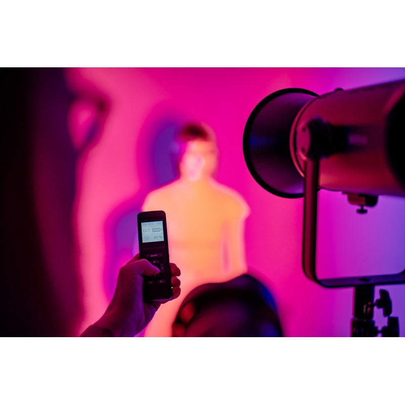 Lampa LED Newell RGB Mitra umożliwia regulację temperatury barwowej światła w zakresie od 2700 K do 6500 K. Duża elastyczność z pewnością ułatwi Ci pracę na planie filmowym, pozwalając precyzyjnie dostosować parametry urządzenia do określonych warunków oświetleniowych. Zaledwie kilka sekund wystarczy, aby wytworzyć światło, które może być cieplejsze od tego, jakie emitują lampy wolframowe lub znacznie chłodniejsze od typowego światła dziennego.