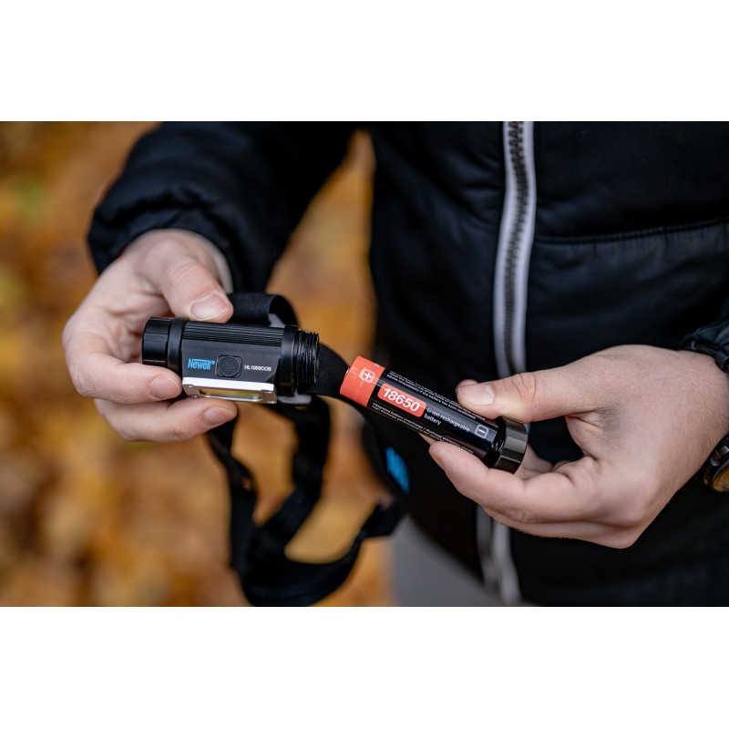Latarka czołowa Newell HL1000COB USB-C oferuje dużą elastyczność w zakresie zasilania. Urządzenie wyposażono w wymienny akumulator 18650. To nieocenione rozwiązanie, które świetnie sprawdzi się w sytuacjach, gdy nie masz dostępu do źródła zasilania lub nie masz czasu na pełne naładowanie przez port USB-C. Mając pod ręką zapasowy akumulator, po prostu odkręcasz komorę baterii i wymieniasz ogniwo.