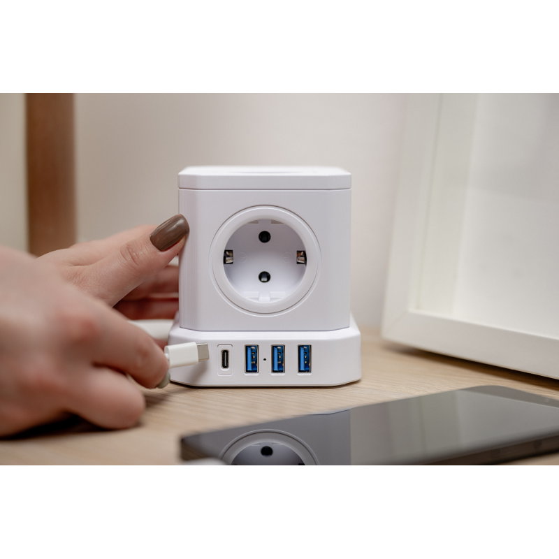 Czy kiedykolwiek musiałeś(-aś) wybierać, które urządzenie naładować najpierw, bo brakowało Ci wolnych gniazdek? Ta kostka rozwiąże ten problem. Na pokładzie znajdziesz: