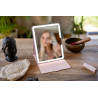 Dzięki funkcjonalnej rozkładanej podstawce zintegrowanej z obudową, lusterko do makijażu Humanas HS-ML02 możesz ustawić na każdej płaskiej powierzchni. Jego wymiary pozwolą na wykonanie precyzyjnego makijażu, bez konieczności ciągłego zmieniania pozycji. A kiedy zakończysz już wszystkie zabiegi pielęgnacyjne, po prostu złóż lusterko do pozycji transportowej. Dzięki ultrasmukłej konstrukcji (1,5 cm) nie zajmie ono więcej miejsca w bagażu, niż Twój podręczny kalendarz.