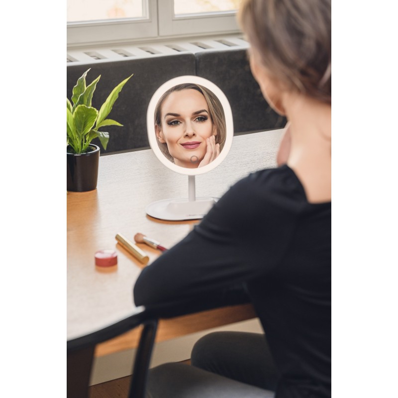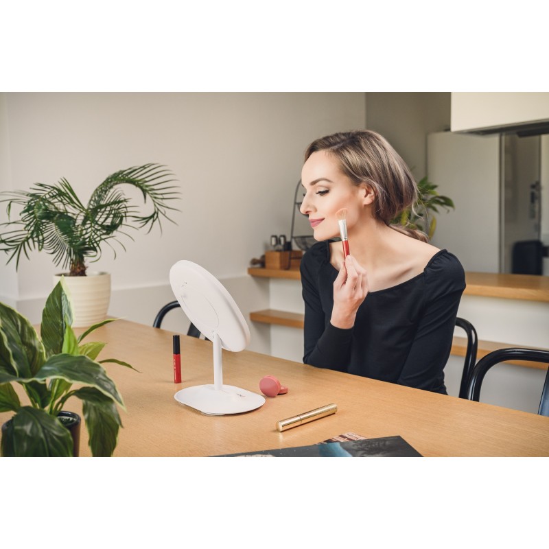 W zależności od pory dnia i efektu, jaki chcesz uzyskać, możesz oświetlić swoją twarz światłem zimnym, neutralnym lub ciepłym. Regulowana temperatura barwowa pozwala dobrać kolor światła tak, aby idealnie odzwierciedlić odcień skóry i nałożonego na twarz makijażu.