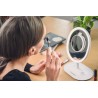W tylnej części obudowy ukryte jest drugie, mniejsze lusterko zbliżające obraz. Dzięki wbudowanemu magnesowi można je przytwierdzić do powierzchni większego lustra i w wygodny sposób skorzystać z pięciokrotnego powiększenia. Taki zestaw pozwoli dopracować Twój make-up w najdrobniejszych szczegółach.