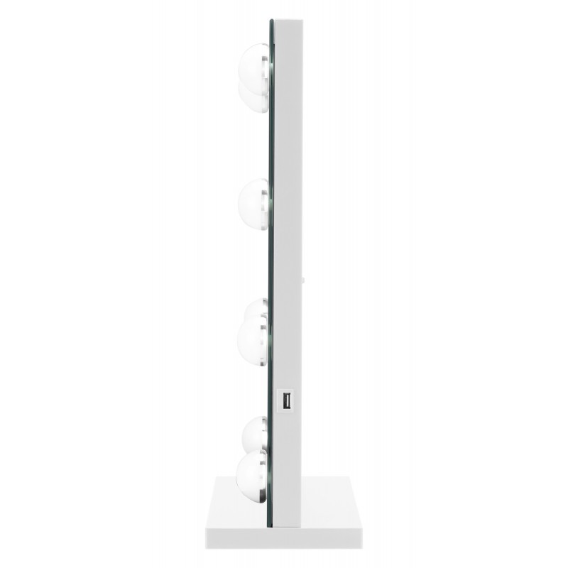 Lustro Humanas HS-HM02 z oświetleniem LED wyposażono w port USB, który z powodzeniem wykorzystasz do zasilania lub ładowania urządzeń, które na co dzień mogą towarzyszyć Ci podczas pracy nad makijażem. Rozładowujący się smartfon, na którym oglądasz filmy instruktażowe z kategorii "beauty"? Lampa UV do hybryd? A może kolorowe światło efektowe, które wykorzystujesz podczas nagrywania vlogów? Wszystkie te urządzenia w wygodny sposób podłączysz do portu USB, który znajduje się zaraz obok gniazda zasilania lustra.