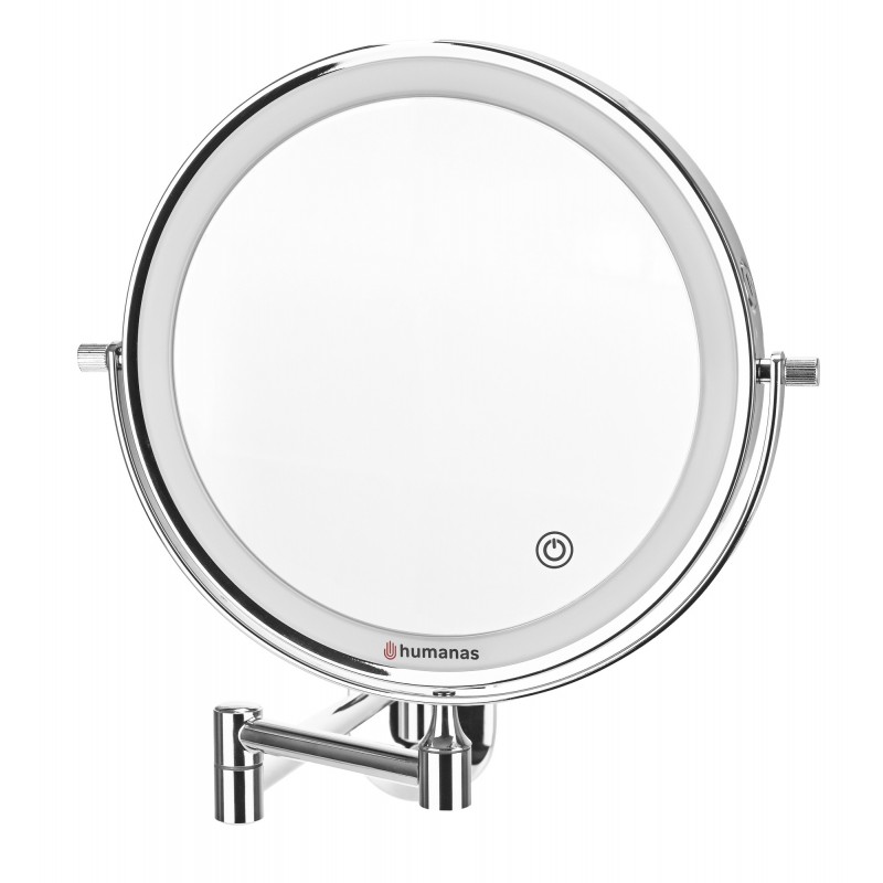 Srebrne lustro Humanas HS-BM01 z podświetleniem LED to idealny wybór do dużych i małych łazienek. Zastosowanie przegubowego uchwytu pozwoli Ci zaoszczędzić przestrzeń, a także precyzyjnie dostosować ustawienie całej konstrukcji do potrzeb codziennej pielęgnacji twarzy. Obie strony lustra wyposażono w mocne ledy, które zapewnią równomierne oświetlenie podczas wykonywania make-upu lub golenia. Dodatkowo designerski wygląd z pewnością doda Twojej łazience stylu i nowoczesnego charakteru.