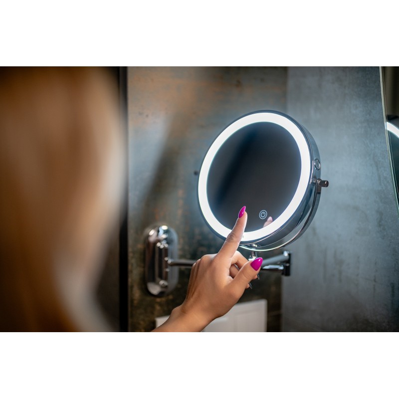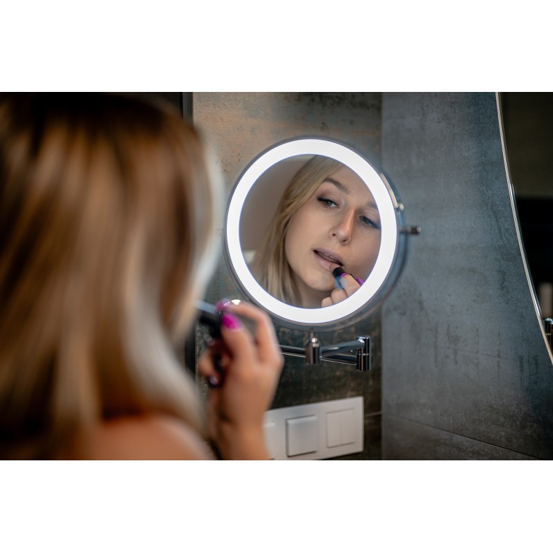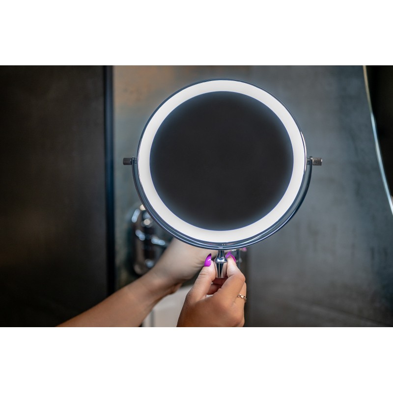 Srebrne lustro łazienkowe Humanas HS-BM01 z podświetleniem LED może być obracane w zakresie 360º. Dzięki temu jego kąt nachylenia może być precyzyjnie dostosowany do Twoich bieżących potrzeb. To jednak nie wszystko. Jedna z dwóch podświetlanych tafli lustra oferuje 5-krotne powiększenie, które sprawi, że podczas zabiegów pielęgnacyjnych nie umknie Ci żaden detal!