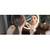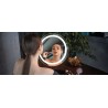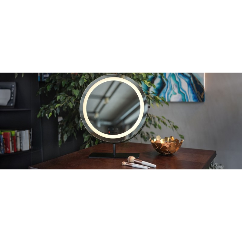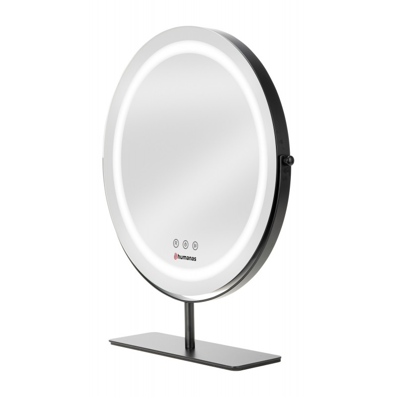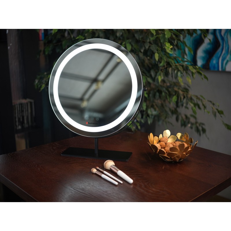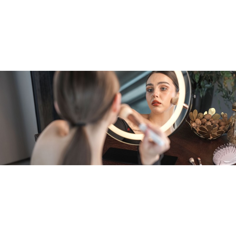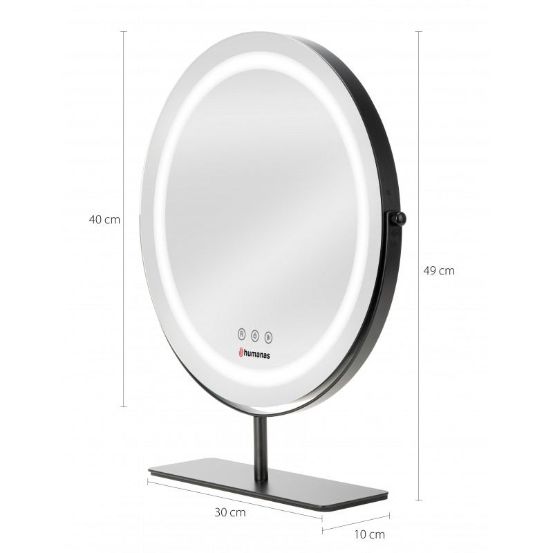 Lustro Humanas HS-HM Scarlet pomoże Ci wykonać perfekcyjny makijaż w niemal każdych warunkach. Panel LED okalający taflę szkła zapewni równomierne oświetlenie twarzy, ułatwiając precyzyjne nakładanie kosmetyków. Krzywe kreski, nierównomiernie rozprowadzony puder czy niedoskonale poprowadzony kontur oczu i ust przestaną być problemem. Możliwość regulacji położenia lustra w zakresie 360º to kolejny atut, który ułatwi wykonywanie makijażu. W zależności od potrzeb możesz ustawić pożądany poziom podświetlenia oraz wybrać jeden z 3 wariantów temperatury barwowej światła. Metalowe wykończenie w czarnym kolorze idealnie sprawdzi się zarówno w domu, jak i w studiu wizażu.
