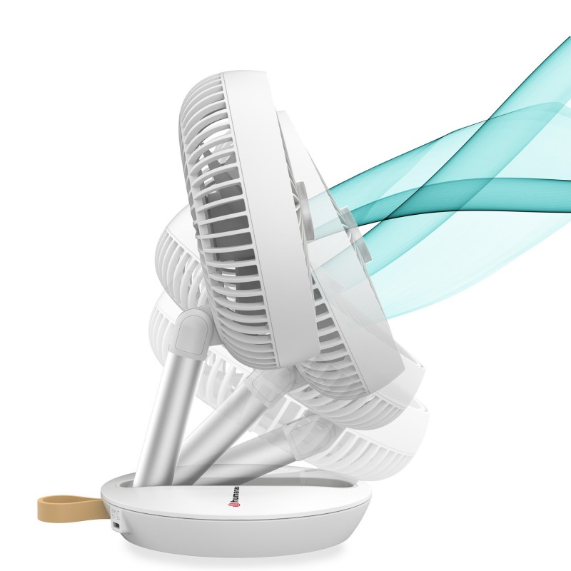 Podczas korzystania z wentylatora Humanas CoolAir F01 nie musisz martwić się o dostęp do gniazdka elektrycznego, długość kabla i to, jak blisko kontaktu znajduje się urządzenie. To jednak nie koniec udogodnień. Ergonomiczne ramię pozwoli ustawić wentylator w najbardziej dogodnej pozycji. Urządzenie może zostać odchylony do tyłu w zakresie 180º, zapewniając Ci odpowiednią kontrolę nad tym, w którą stronę skierujesz strumień chłodnego powietrza.