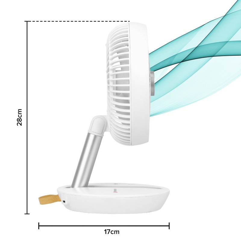 Humanas CoolAir F01 to bezprzewodowy wentylator, który pozwoli Ci uniezależnić się od gniazdek elektrycznych. Dzięki ergonomicznej składanej konstrukcji zmieścisz go w plecaku lub walizce i zabierzesz wszędzie tam, gdzie upał daje się we znaki. Z łatwością przeniesiesz go z pokoju do pokoju, przetransportujesz z domu do biura lub zabierzesz w dalszą podróż. Z wentylatorem Humanas CoolAir F01 przyjemny chłód może być zawsze z Tobą!
