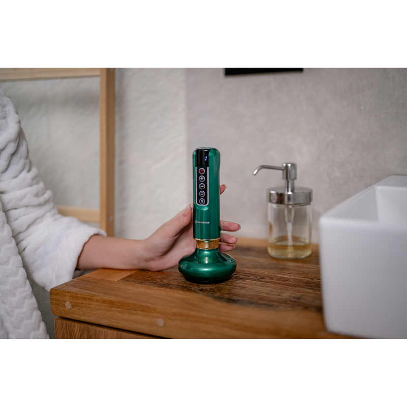 Z masażerem antycellulitowym Humanas DermaSmooth nie tylko zadbasz o jędrną, gładką skórę, lecz także stworzysz w domu własną strefę relaksu. Przekształć zwykłą łazienkę w oazę spokoju, zapal świece, włącz ulubioną muzykę i rozkoszuj się zabiegiem, który łączy dobrodziejstwa bańki chińskiej, masażu kulkowego i kojącego ciepła. Odkryj nowy wymiar pielęgnacji ciała i ciesz się pięknem, które promienieje pewnością siebie każdego dnia.
