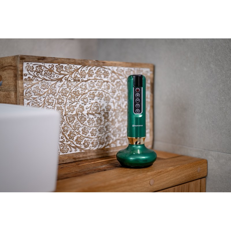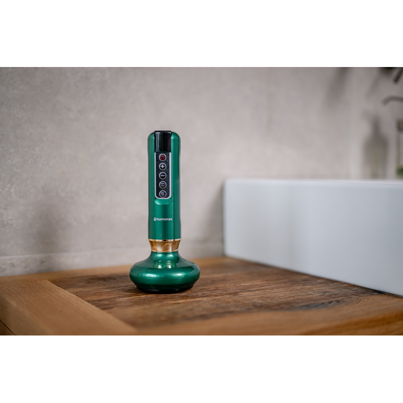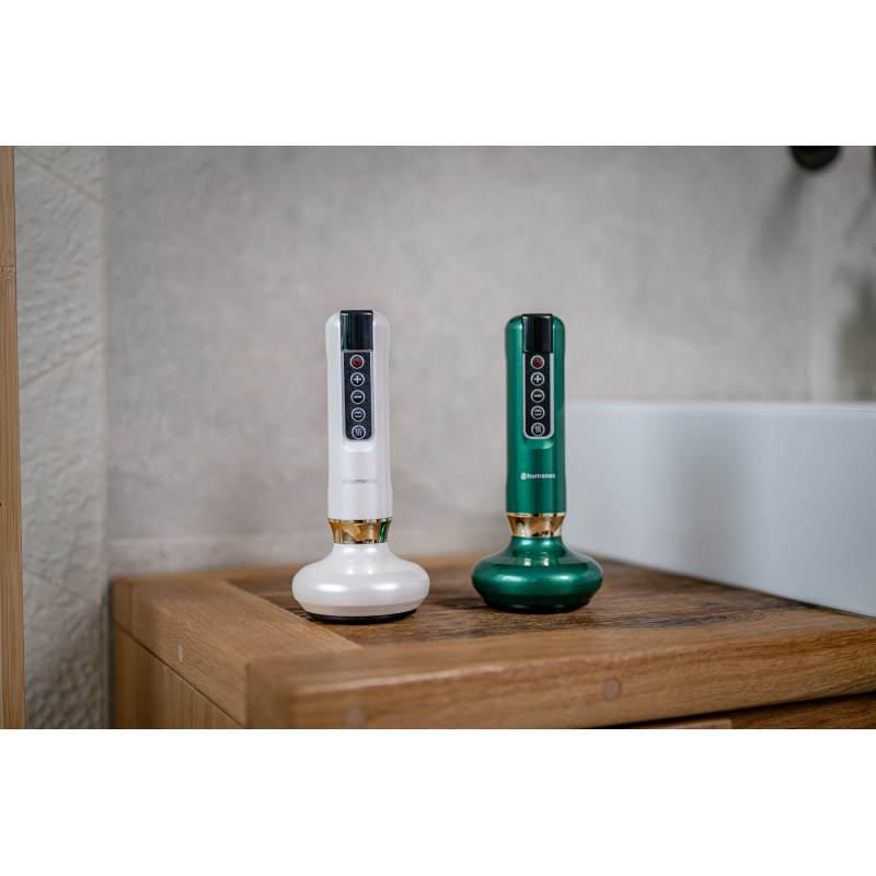 Dzięki funkcji bańki chińskiej, jaką oferuje masażer Humanas DermaSmooth odkryjesz uwspółcześnioną wersję starożytnej techniki Gua Sha ("scraping"). Przesuwane po skórze urządzenie twory podciśnienie i pobudza krążenie krwi, co ułatwia usuwanie toksyn z organizmu, poprawiając tym samym zdrowie i ogólny stan skóry. Scraping może również pomóc w łagodzeniu bólu i napięcia, szczególnie w przypadku przewlekłych dolegliwości mięśniowo-szkieletowych. Masaż Gua Sha poprawia również funkcjonowanie układu limfatycznego i odpornościowego, a także wzmacnia układ nerwowy.