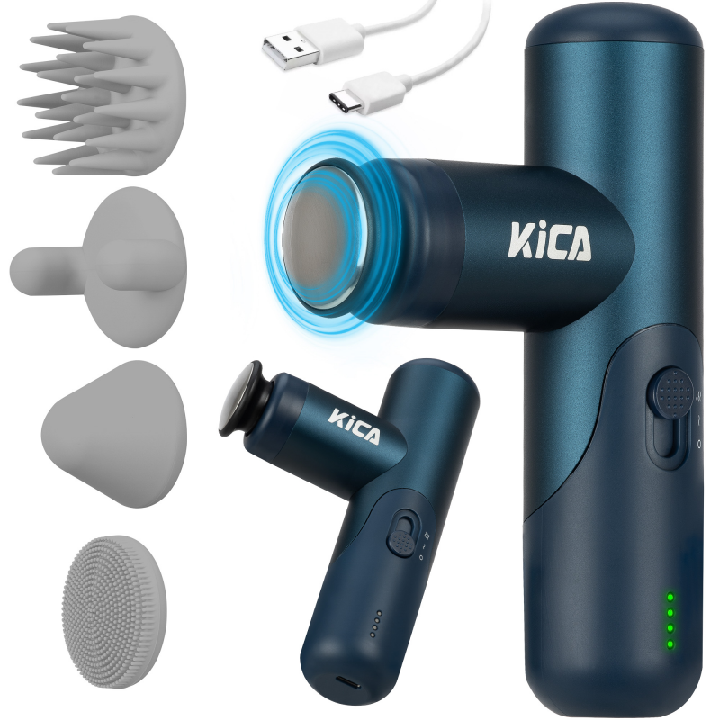 KiCA mini 3 to kieszonkowy masażer wibracyjny o wadze 255 g i zaledwie 14 cm długości. Pozwala wykonać profesjonalny masaż w dowolnym miejscu – w domu, w biurze, na siłowni lub podczas podróży. Bezszczotkowy silnik generuje aż 7 kG siły nacisku, docierając do tkanek głębokich na poziomie nawet 7 mm. Urządzenie oferuje płynną regulację intensywności, ergonomiczną obudowę w kształcie litery „T” oraz aż 4 końcówki wykonane z medycznego silikonu do różnych partii ciała – od pleców po skórę głowy. Cicha praca, długi czas działania (do 7,5 h) i szybkie ładowanie przez USB-C czynią go odpowiednim kompanem do relaksu, regeneracji i domowej fizjoterapii. To również idealny pomysł na prezent dla Twoich bliskich!