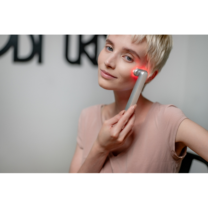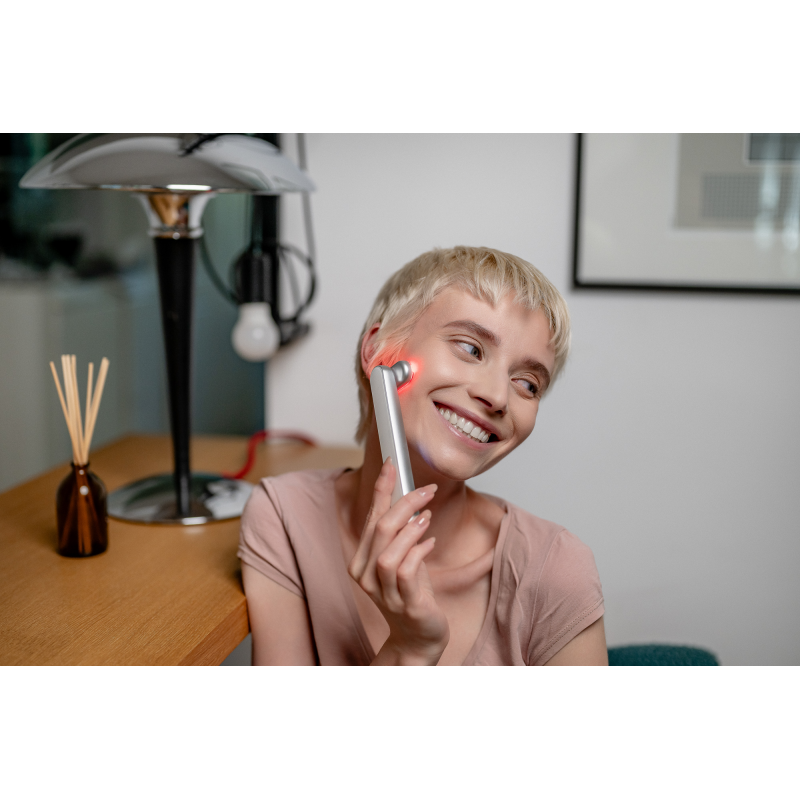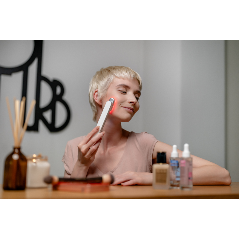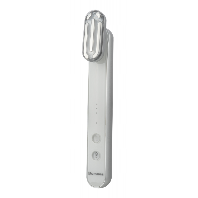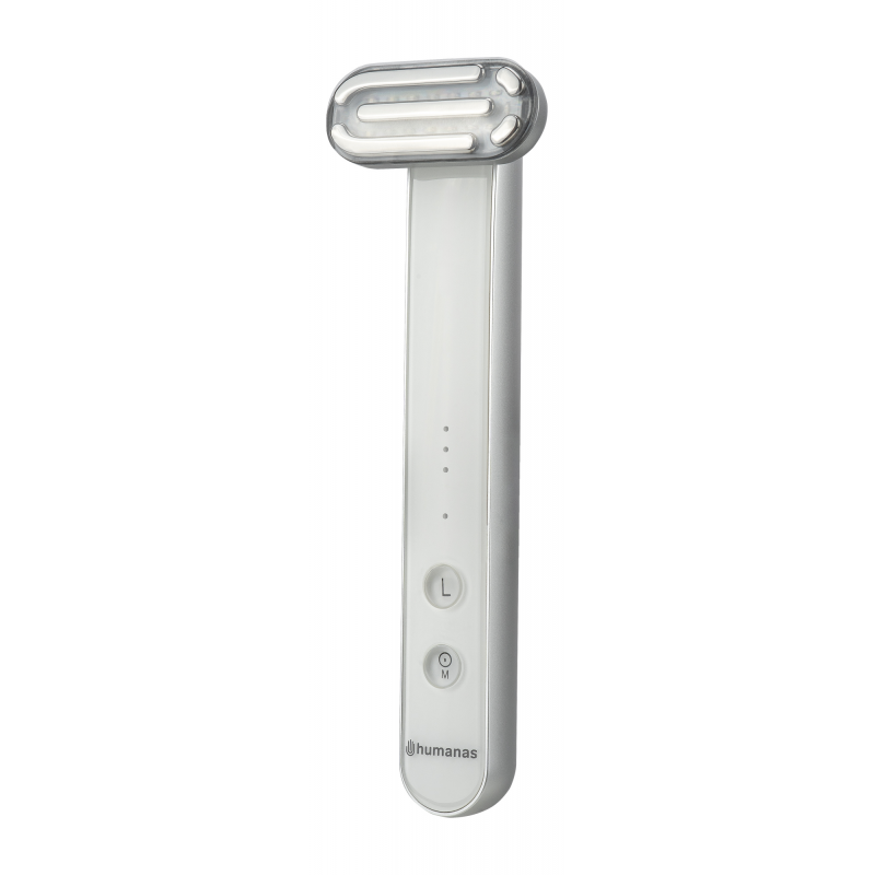 Masażer Humanas Aurora pozwala regularnie korzystać z dobrodziejstw terapii czerwonym światłem. Jego promienie wnikają w głąb skóry, aktywując mitochondria i przyspieszając regenerację komórek. Światło o długości fali 630 nm stymuluje również produkcję kolagenu, co skutkuje wygładzeniem zmarszczek, redukcją przebarwień oraz poprawą ogólnej kondycji skóry. Codzienne stosowanie masażera pozwoli Ci uzyskać promienny i młodszy wygląd, bez konieczności odwiedzania gabinetów kosmetycznych.