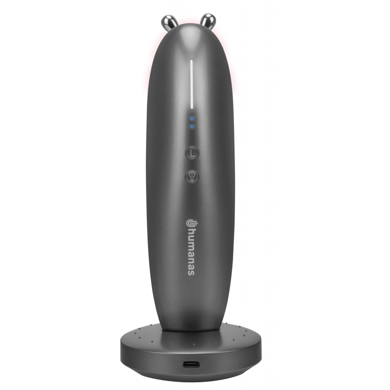 Urządzenie do liftingu i masażu twarzy Humanas Serenum zostało wyposażone w wydajny akumulator o pojemności 2000 mAh, który zapewnia do 60 minut pracy na jednym ładowaniu. Dzięki szybkiemu ładowaniu w ciągu zaledwie 150 minut urządzenie będzie ponownie gotowe do użycia. Stacja dokująca umożliwiająca uzupełnianie energii w pozycji pionowej nie tylko poprawi komfort pracy z masażerem, ale także zapewni efektowną ekspozycję na Twojej toaletce, szafce lub półce.