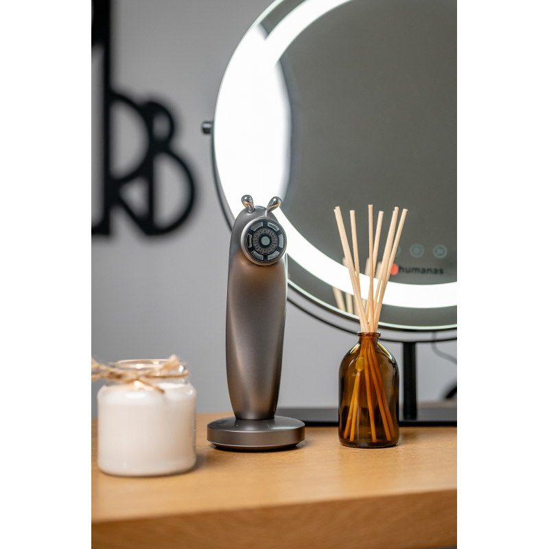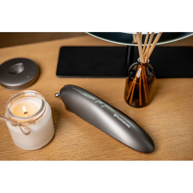 Ergonomiczna budowa i lekka konstrukcja sprawiają, że urządzenie doskonale leży w dłoni, a jego niewielkie rozmiary pozwalają na łatwe przenoszenie i przechowywanie. Wygodną obsługę zapewniają odpowiednio wyprofilowane przyciski oraz diody LED świecące w różnych kolorach. Tryb zapamiętywania ostatnio wykorzystywanych ustawień skróci czas potrzebny na rozpoczęcie zabiegu, co uczyni codzienną pielęgnację jeszcze bardziej wygodną i intuicyjną. Nowoczesny design urządzenia Humanas Serenum doskonale odnajdzie się w każdym pomieszczeniu.