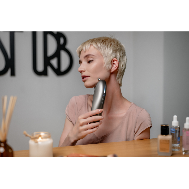 Technologia soniczna to przełomowy sposób na poprawę kondycji skóry. Fale przenikają głęboko do tkanek, gdzie stymulują produkcję kolagenu i elastyny – dwóch kluczowych białek odpowiedzialnych za jędrność i elastyczność Twojej cery. Regularne stosowanie urządzenia pomoże skutecznie wygładzić drobne zmarszczki, zredukować zwiotczenia skóry, a także ujędrnić jej strukturę. Technologia soniczna poprawia również mikrokrążenie, co wspiera naturalne procesy regeneracyjne, nadając cerze zdrowy i młody wygląd.