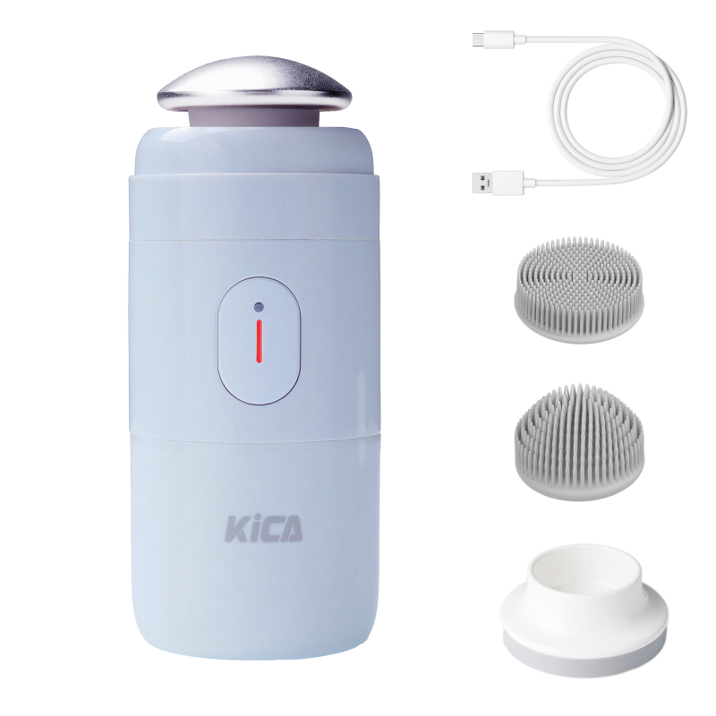 KiCA PureClear to elektryczna szczoteczka soniczna do mycia i masowania twarzy. Urządzenie generuje do 3000 wibracji na minutę. Kompaktowy masażer łączy dwa rodzaje ruchu – masaż imitujący okrężne ruchy palców oraz peelingujące wibracje. Sczoteczka skutecznie usuwa zanieczyszczenia, nadmiar sebum i pozostałości makijażu z głębi porów. Dwie wymienne głowice z hipoalergicznego silikonu dopasowują się do różnych stref twarzy, w tym trudno dostępnych miejsc przy nosie i kącikach oczu. Wodoodporność IPX6 i bezprzewodowe ładowanie indukcyjne dopełniają obraz nowoczesnego urządzenia do pielęgnacji, które zmieści się w każdej kosmetyczce.