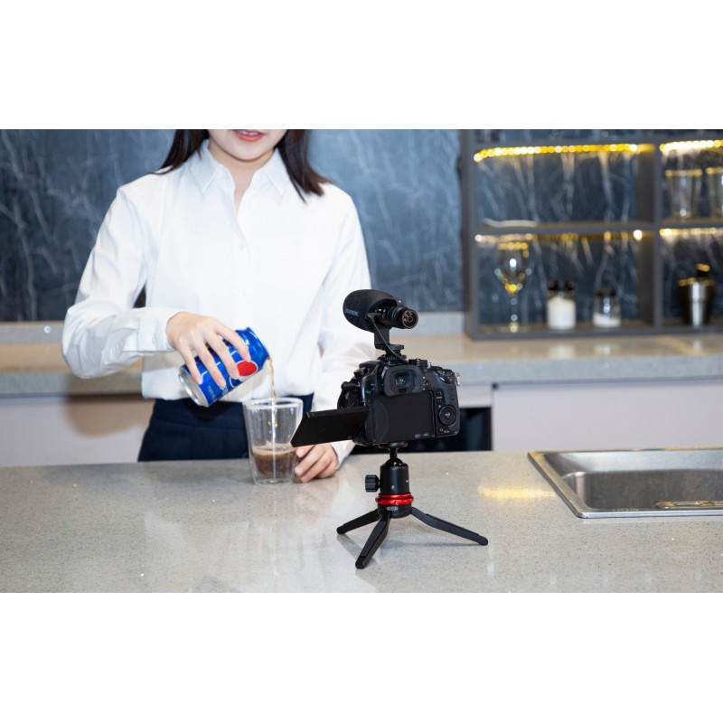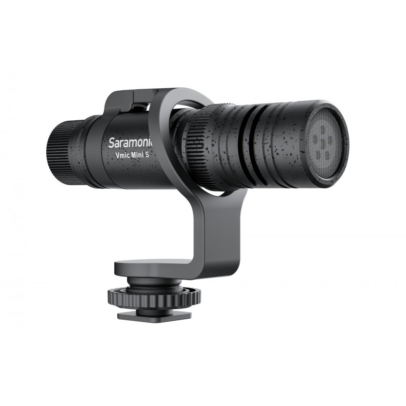 Mikrofon pojemnościowy Saramonic Vmic Mini S do aparatów i kamer wyposażono w specjalny system redukcji wstrząsów i wibracji. Ergonomiczna konstrukcja obudowy urządzenia pozwala odizolować kapsułę od niepożądanych ruchów, trzasków lub stuknięć, które mogłyby zakłócić jakość dźwięku podczas nagrywania. Dzięki obrotowej podstawie pozycja mikrofonu może być regulowana w zakresie 360º.