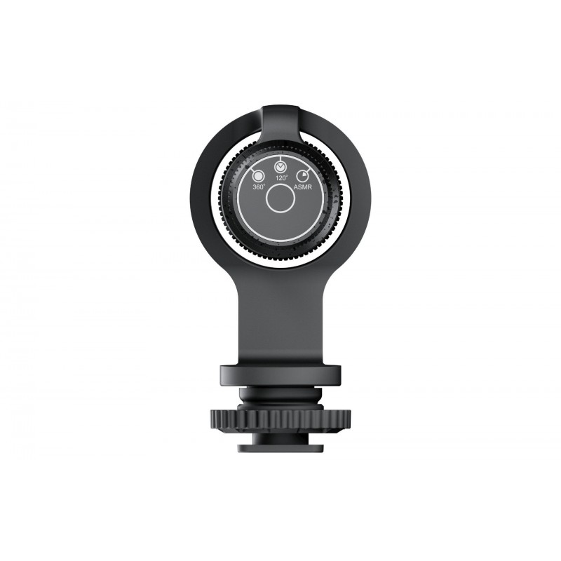 Pokrętło znajdujące się w tylnej części urządzenia pozwala przełączać się pomiędzy trybami: ASMR, 120º oraz 360º. Zmiana charakterystyki zbierania dźwięku sprawia, że mikrofon pojemnościowy Saramonic Vmic Mini S do aparatów i kamer może być wykorzystywany w różnych sytuacjach. Wszystko zależy od specyfiki nagrań, które realizujesz. W trybie 120º możesz nagrywać tylko te dźwięki, które docierają do kapsuły z przodu. Będzie to idealny wybór, jeśli zależy Ci na wyraźnej rejestracji głosu. Chcąc oddać atmosferę otoczenia, skorzystaj z wszechkierunkowej charakterystyki zbierania dźwięku w zakresie 360º.