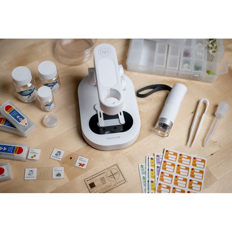Model BeaverLAB DDL-M1A to nie tylko mikroskop i rozszerzająca jego unikalne możliwości baza. W zestawie z urządzeniami otrzymasz komplet przydatnych akcesoriów, które pomogą Ci odkrywać mikroświat. Pęseta ułatwi umieszczanie próbek na szkiełkach, szalki Petriego posłużą do hodowli bakterii, pudełka umożliwią przechowywanie akcesoriów i preparatów, a buteleczki i pipeta przydadzą się do obserwacji płynów. To wszystko, czego potrzebujesz, aby w komfortowy sposób pracować z mikroskopem.