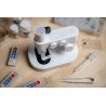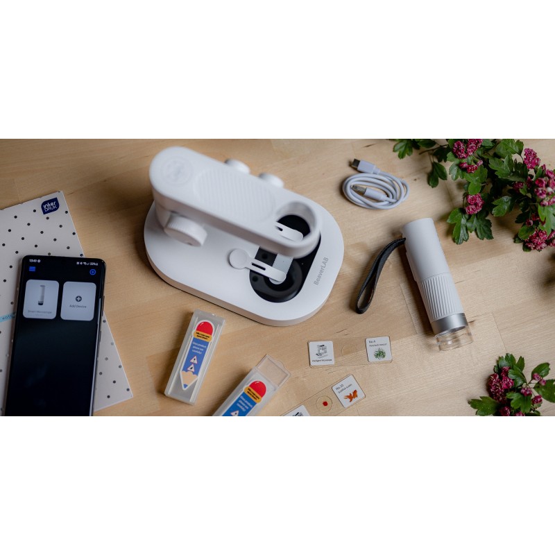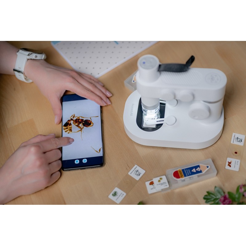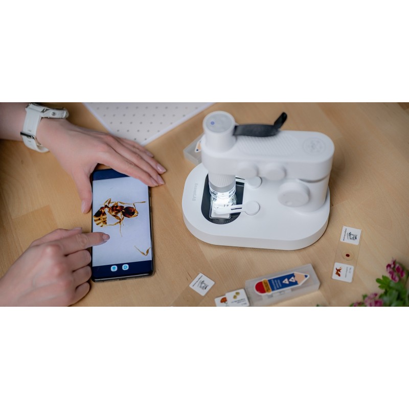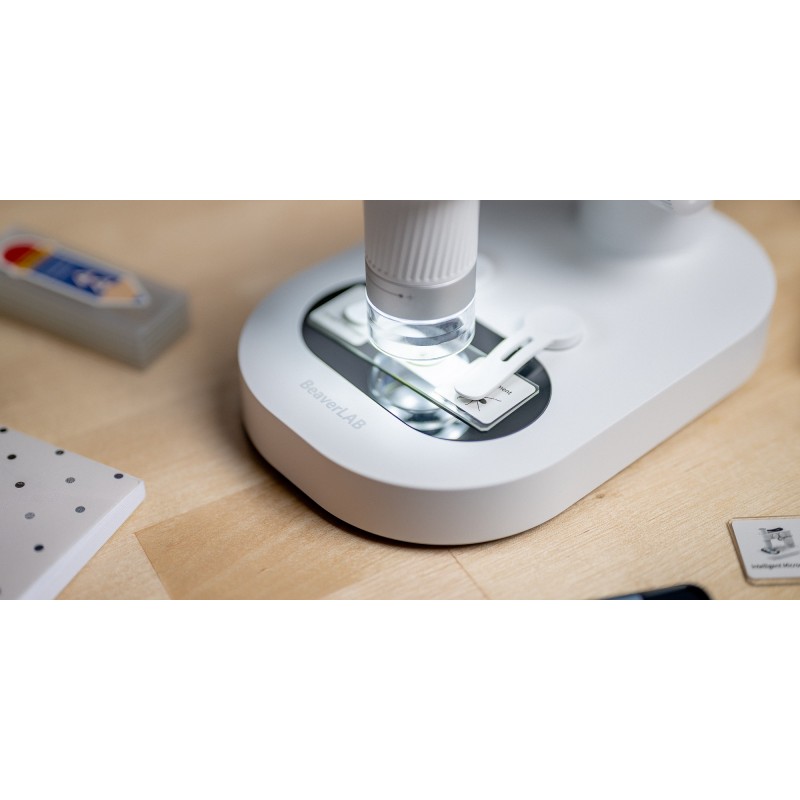 BeaverLAB DDL-M1A to połączenie kompaktowego mikroskopu cyfrowego BeaverLAB DDL-DDL M1 ze specjalną bazą, która dodatkowo rozszerza funkcjonalność urządzenia. Zestaw uzupełniono o komplet akcesoriów, wśród których znajdziesz m.in. preparaty, szkiełka nakrywkowe, pojemniki, narzędzia, książkę i dziennik obserwacji. Mikroskop wykorzystuje Wi-Fi, aby połączyć się z Twoim smartfonem lub tabletem. Urządzenie oferuje powiększenie do 400X. Podświetlany stolik, możliwość regulacji natężenia oraz koloru światła, opcja bezprzewodowej pracy na akumulatorze to tylko niektóre cechy wyróżniające ten model. Trwałość urządzenia zapewnia solidna obudowa wykonana z aluminium lotniczego i tworzywa ABS.