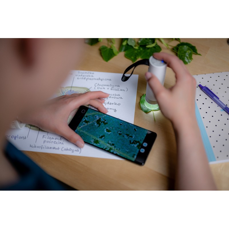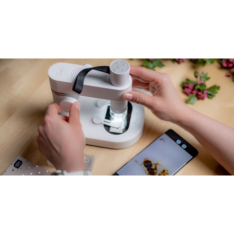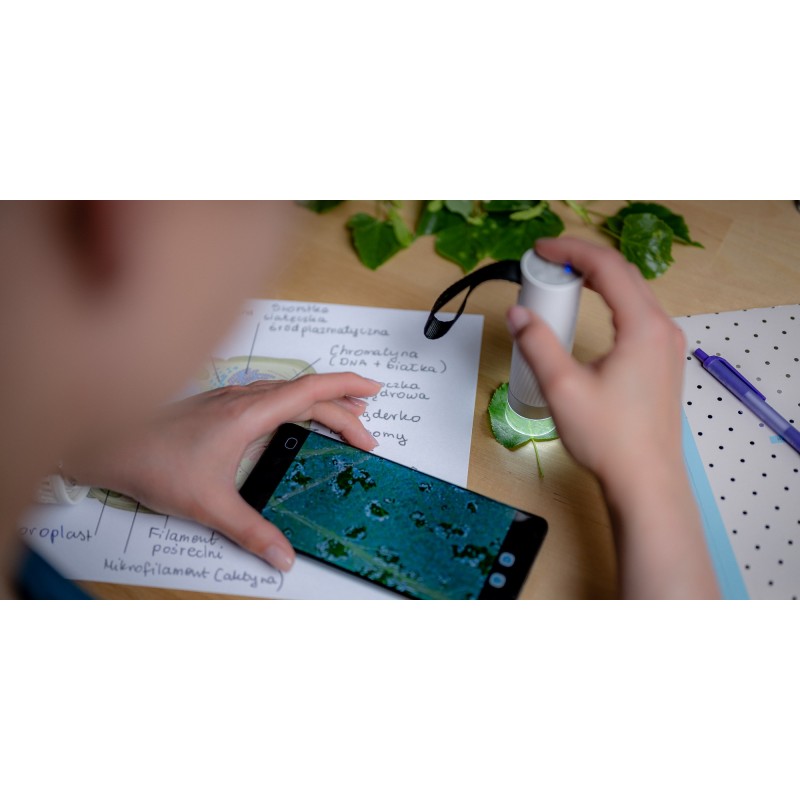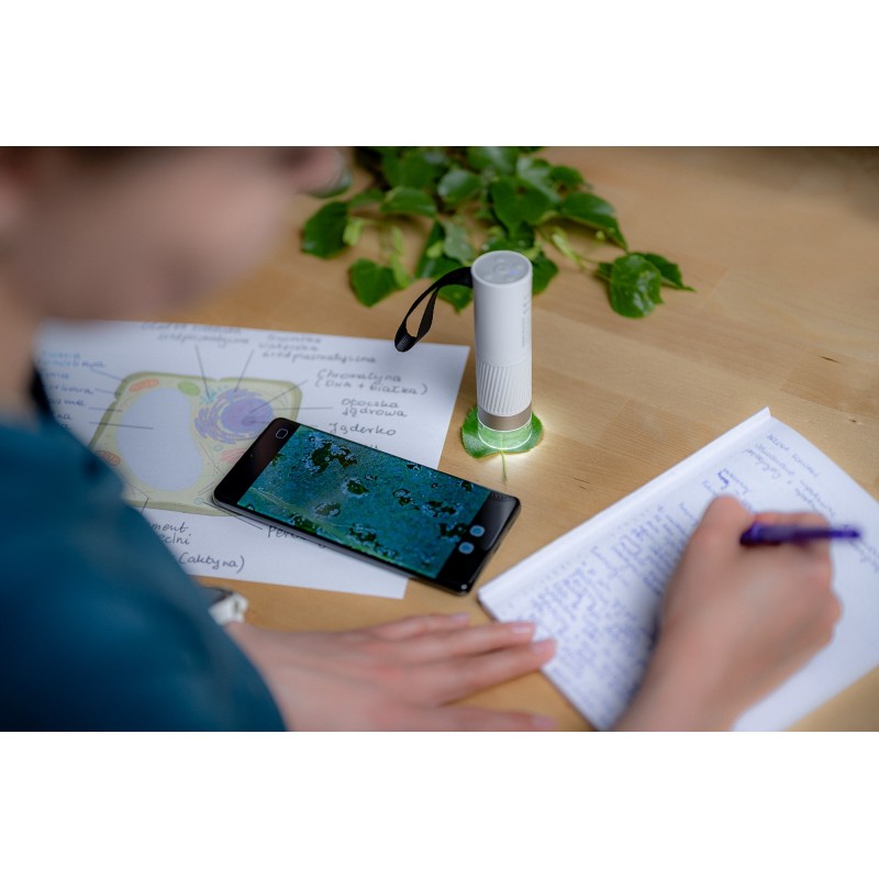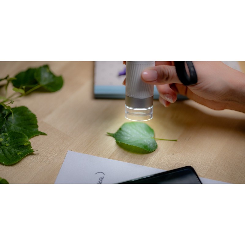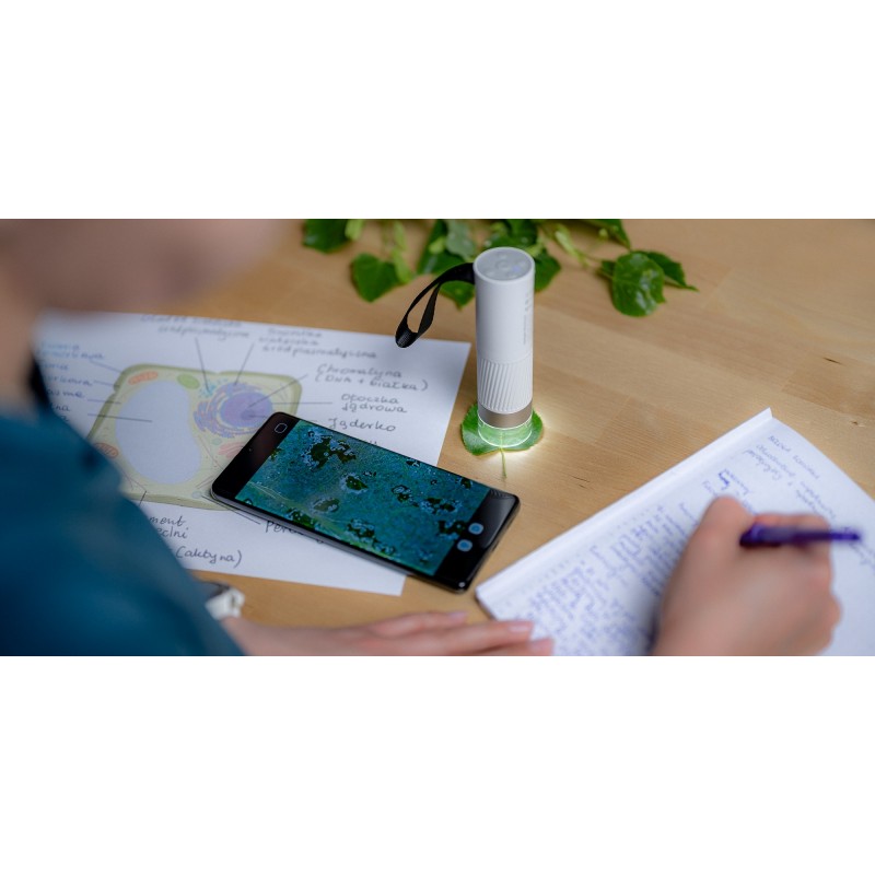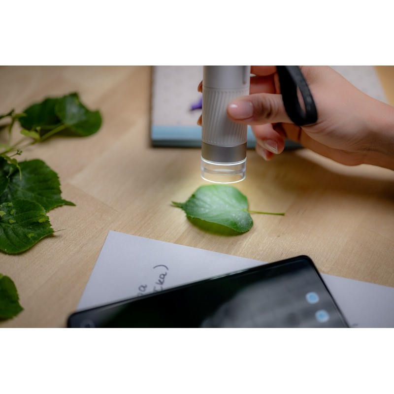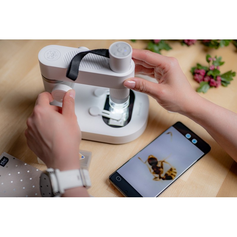Łączność Wi-Fi umożliwia błyskawiczne nawiązanie połączenia ze smartfonem lub tabletem. Dzięki bezpłatnej aplikacji Beaver Point dostępnej na systemy iOS oraz Android, możesz w czasie rzeczywistym oglądać i analizować obraz zarejestrowany przez mikroskop. Wszystko, co zobaczysz, może zostać uwiecznione na zdjęciu lub filmie.