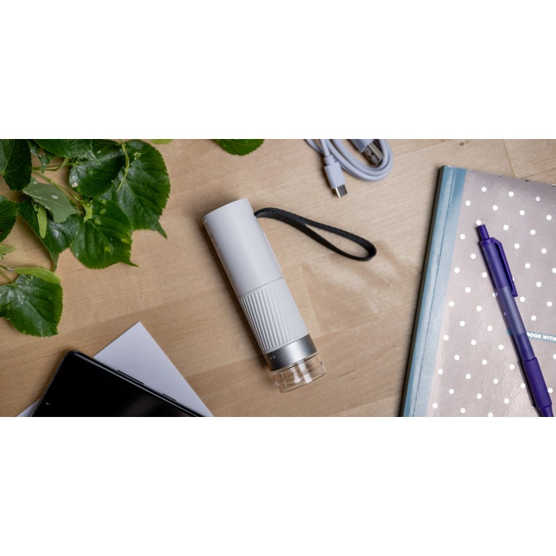 Zarówno bazę, jak i sam mikroskop wyposażono w akumulatory, które pozwalają działać urządzeniom bezprzewodowo. Dzięki temu zyskujesz jeszcze większą mobilność. Ponadto uniwersalny port USB-C umożliwia wygodne ładowanie lub zasilanie urządzeń, bez konieczności sięgania po specjalistyczne ładowarki. Wystarczy ta, którą na co dzień uzupełniasz energię w swoim smartfonie.