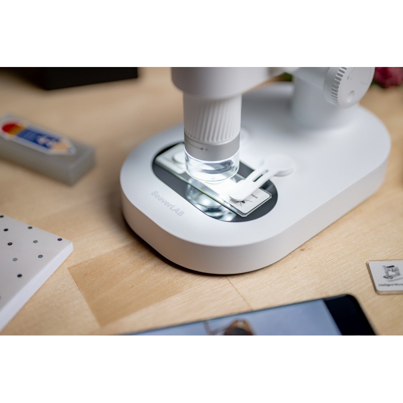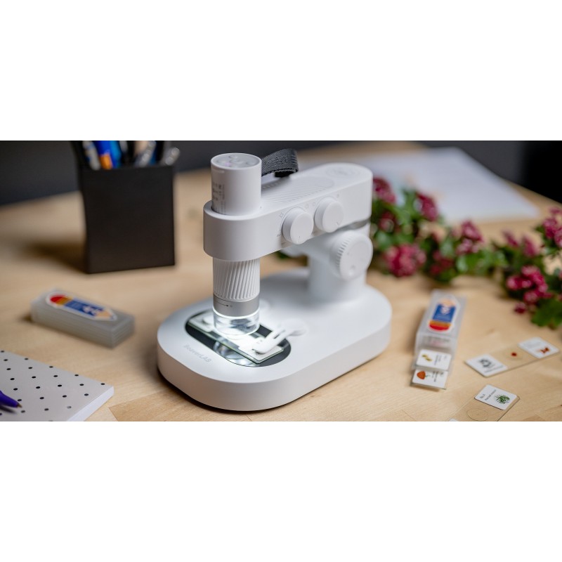 BeaverLAB DDL-M1B to połączenie ultrakompaktowego mikroskopu cyfrowego BeaverLAB DDL-DDL M1 ze specjalną bazą, która dodatkowo rozszerza funkcjonalność urządzenia. Mikroskop wykorzystuje Wi-Fi, aby połączyć się z aplikacją mobilną, którą bezpłatnie pobierzesz na swój smartfon lub tablet. Oferuje on powiększenie do 400X. Podświetlany stolik, możliwość regulacji natężenia oraz koloru światła, opcja bezprzewodowej pracy na akumulatorze to tylko niektóre cechy wyróżniające ten model. Trwałość urządzenia zapewnia solidna obudowa wykonana z aluminium lotniczego i tworzywa ABS. W zestawie znajdziesz też 5 gotowych preparatów i 5 pustych szkiełek nakrywkowych.