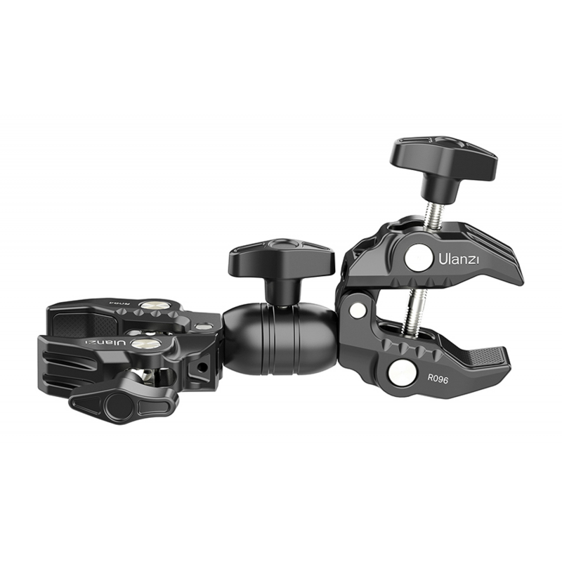 Ulanzi R096 to solidny i wszechstronny uchwyt typu “crab clamp”, który umożliwia szybki montaż sprzętu foto-video tam, gdzie tradycyjny statyw nie daje rady. Dwa niezależne zaciski z zakresem rozstawu od 12 do 58 mm oraz obrotowe głowice 360° pozwalają pewnie przymocować aparat, kamerę, lampę LED lub mikrofon do rurek, blatów, poręczy czy kierownicy. Dzięki aluminiowej konstrukcji uchwyt jest lekki (283 g), ale i wytrzymały. Z powodzeniem udźwignie sprzęt do 1,5 kg. Antypoślizgowe okładziny skutecznie poprawiają stabilność i bezpieczeństwo mocowania. To niezawodne narzędzie dla twórców działających zarówno w studiu, jak i w terenie.