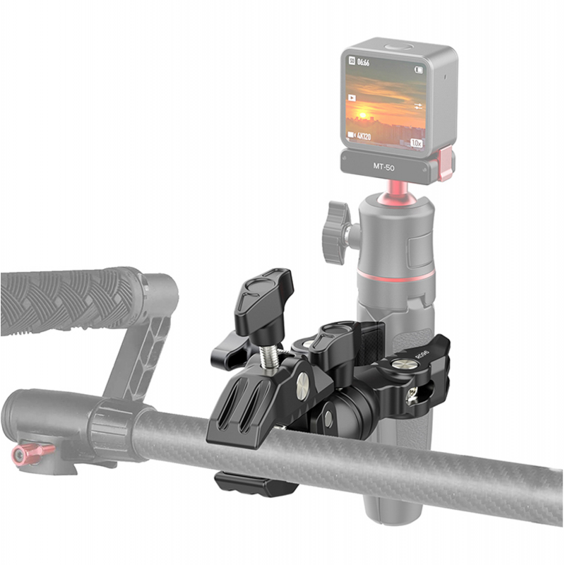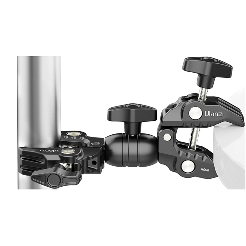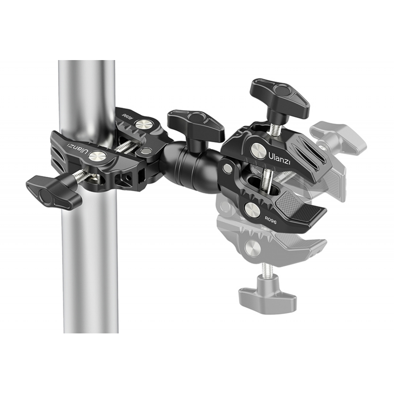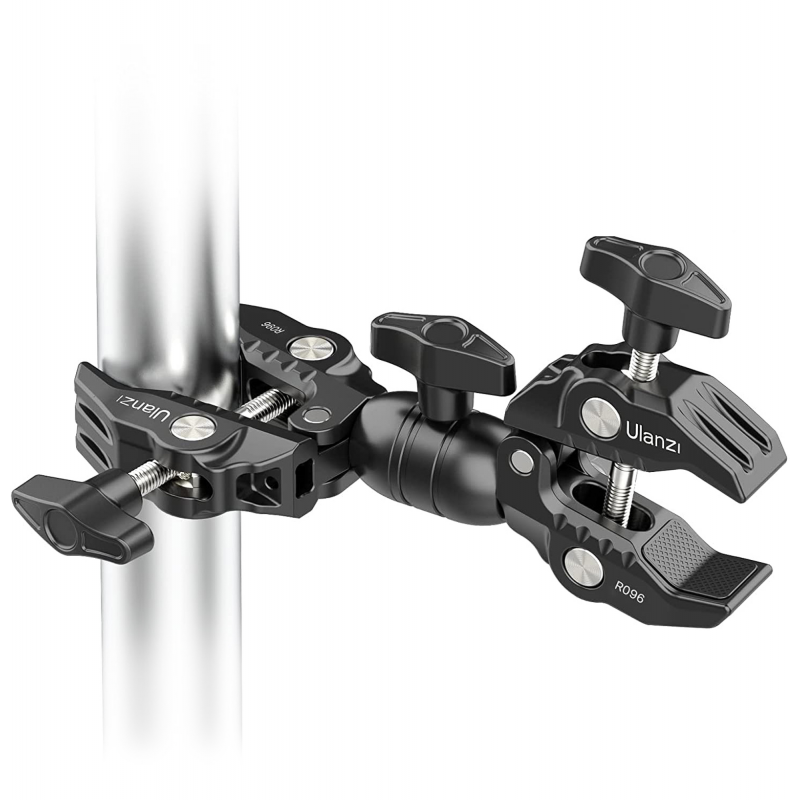 Oba ramiona zakończone zaciskami możesz obracać w zakresie 360°, co pozwala idealnie ustawić zamocowany sprzęt pod odpowiednim kątem. Niezależnie od tego, czy kręcisz tutoriale na sali treningowej, nagrywasz rolki w lesie, realizujesz vlogi, jadąc na rowerze, czy szukasz sposobu na montaż lampy LED na nietypowym statywie – uchwyt Ulanzi R096 zapewni Ci pełną elastyczność w każdej sytuacji.