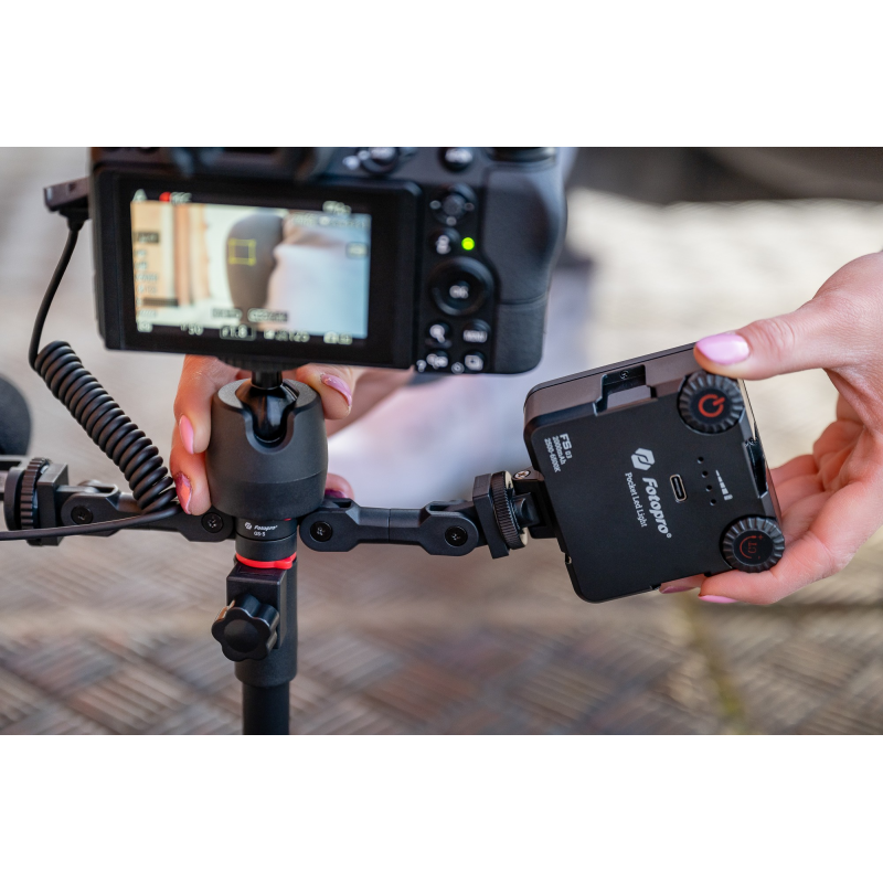 Ramię montażowe Fotopro GS-3 to kieszonkowy uchwyt typu "magic arm", który docenią vlogerzy, twórcy video publikujący na YouTubie, TikToku i Instagramie, a także streamerzy, podcasterzy oraz osoby tworzące webinary. To niewielkie akcesorium pozwoli szybko i wygodnie stworzyć ergonomiczne stanowisko pracy, umożliwiające nagrywanie filmów smartfonem lub małym aparatem oraz udział w wideokonferencjach i zdalnych lekcjach. Położenie ramion zakończonych szynami na zimną stopkę możesz precyzyjnie ustawić w obrębie 4 ruchomych punktów regulacji. Dzięki temu masz pewność, że mikrofon, lampa LED lub inne akcesoria perfekcyjnie uzupełnią Twój filmowo-fotograficzny niezbędnik.