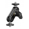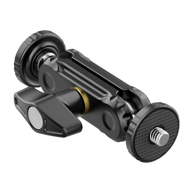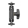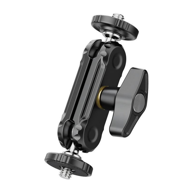 Uchwyt montażowy Ulanzi R102 to dwustronne mocowanie wyposażone w głowice kulowe blokowane jednym pokrętłem. Dzięki niemu w wygodny sposób zainstalujesz wybrane akcesoria foto-video na klatce operatorskiej lub kompatybilnej szynie montażowej. Będą to m.in. lampy LED, mikrofony lub monitory podglądowe. Uchwyt oferuje szeroki zakres ruchu głowic. Każdą z nich wieńczy płytka montażowa z męskim gwintem 1/4" zabezpieczona antypoślizgową okładziną.