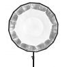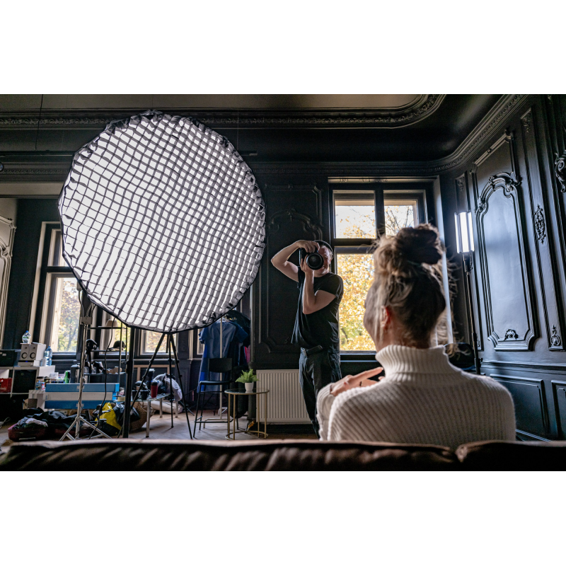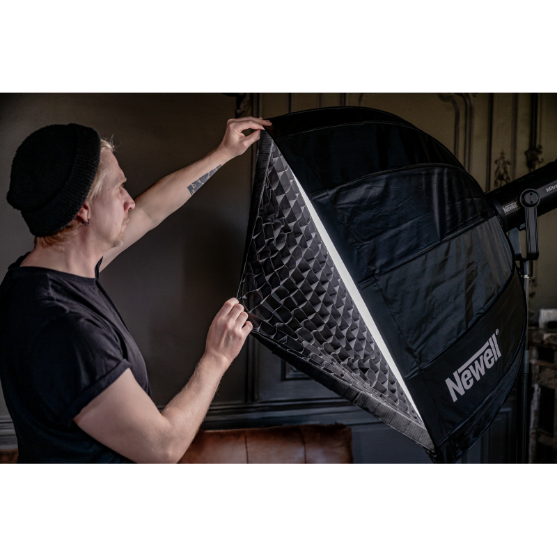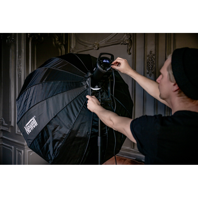 Dzięki 120 cm średnicy softbox paraboliczny Newell idealnie łączy mobilność z efektywnością. Jego konstrukcja sprawia, że świetnie nadaje się zarówno do fotografii portretowej, jak i produktowej. Z powodzeniem wykorzystasz go również przy produkcjach video. W zestawie znajdziesz dwa dyfuzory, które umożliwiają regulację rozproszenia światła, oraz plaster miodu (grid), który precyzyjnie ukierunkuje wiązkę na wybrany obiekt. Dzięki temu masz pełną kontrolę nad każdym kadrem, wzbogaconym o miękkie, równomierne oświetlenie.