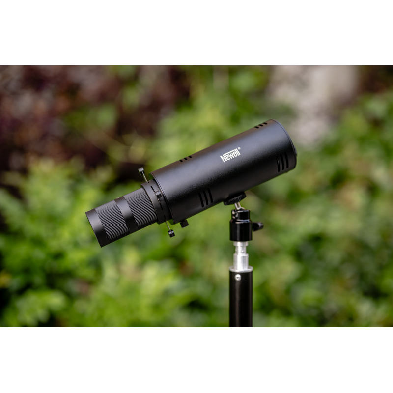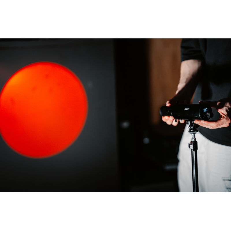 Strumienica Newell Perseo Mini została wyposażona w układ soczewek wzmacniających, który aż 16-krotnie zwiększa intensywność strumienia świetlnego, jakie generuje to 20-watowe urządzenie. Dzięki temu wiązka z łatwością przebija się przez ambientowe światło w pomieszczeniu lub oświetla wybrane fragmenty sceny. To idealny wybór do tworzenia punktowych akcentów świetlnych, podkreślania detali i budowania określonego klimatu Twoich zdjęć i filmów.
