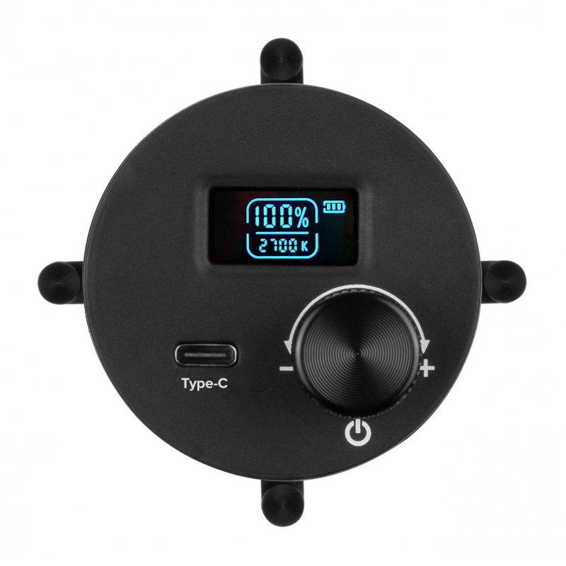 Urządzenie wyposażono w podświetlany ekran, który pozwoli kontrolować parametry światła nawet w całkowitych ciemnościach. Do nawigacji służy wielofunkcyjne pokrętło z wbudowanym przyciskiem, pozwalające na szybkie i precyzyjne sterowanie jasnością, temperaturą barwową czy efektami specjalnymi. Strumienicę Newell Perseo Mini można więc obsługiwać jedną ręką, bez zbędnego przeszukiwania menu czy sięgania po instrukcję.