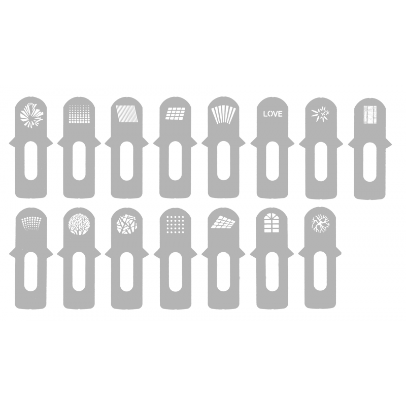 Strumienica Newell Perseo Mini obsługuje małe wymienne filtry GOBO. To niewielkie metalowe płytki z otworami tworzącymi różne kształty i wzory. W zestawie znajdziesz ich aż 15. Dostępne filtry obejmują motywy roślinne, ramy okienne, pęknięcia czy bardziej abstrakcyjne kompozycje składające się z linii lub kropek. Dzięki nim możesz tworzyć zróżnicowane, artystyczne efekty wizualne. Filtry GOBO to doskonały wybór m.in. do portretów, lookbooków, teledysków, rolek, czy vlogów.